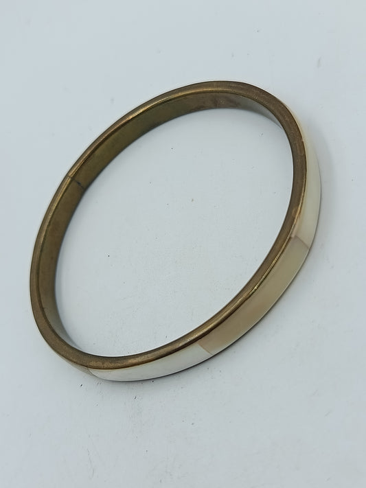 Armreif Messing mit Perlmutt Intarsien Vintage Look