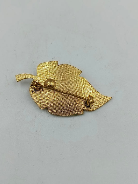 Vergoldete Brosche Blattdesign mit Perle