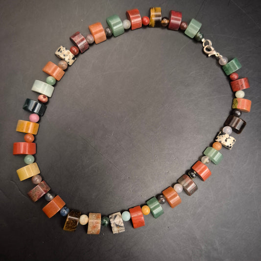 Bunte Edelstein Halskette – Zylinderperlen aus Naturstein