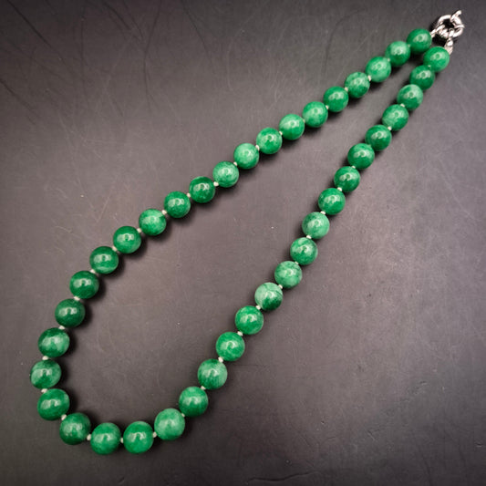 Grüne Stein Halskette – Elegantes Design mit glänzenden Kugelperlen