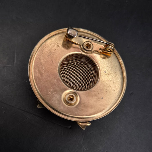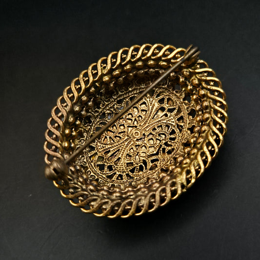 Vintage Brosche mit goldener Schleife – Floraler Look in Rundform