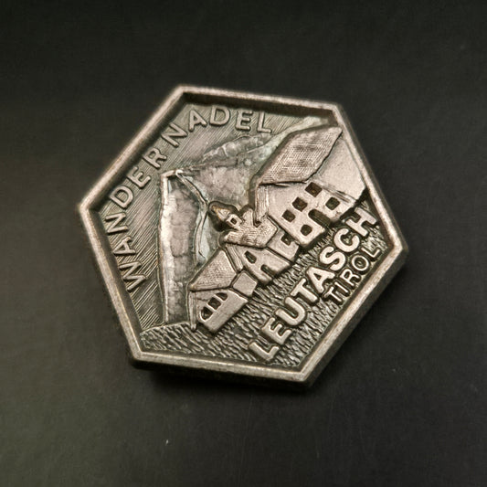 Wandernadel Leutasch Tirol – Sechseckige Sammlerbrosche aus Metall