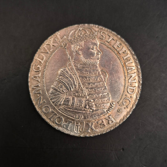 Silberfarbene Nachbildung einer historischen Münze – Motiv: Stephanus Bathory