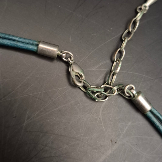 Türkisfarbene Anhänger Halskette – Doppelanhänger am Textilband