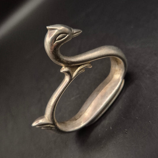 Silberner Designer O-Ring in Form eines stilisierten Schwans