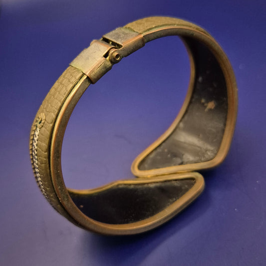 Vintage Armreif mit floralen Details – Strukturierte Lederoptik in Oliv