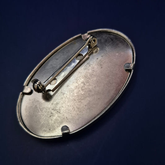 Große Vintage Brosche – Abalone & Strass auf Antik-Silberoptik