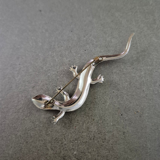 Eidechse Brosche – Silberfarben mit grünen Steinen