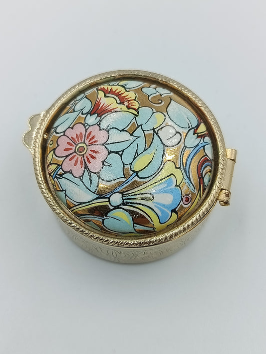 Antikes Cloisonné-Döschen mit floraler Emaille