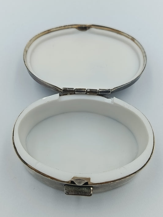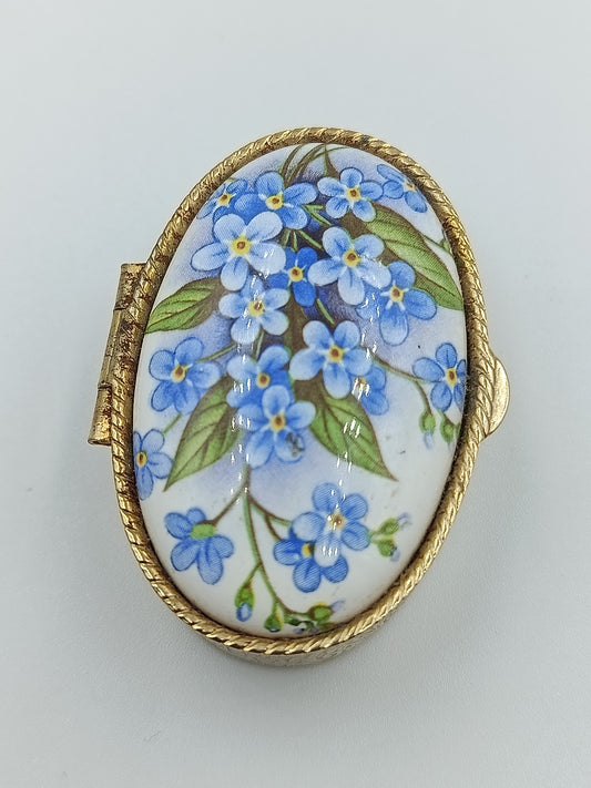 Ovale Porzellandose mit Vergissmeinnicht-Motiv