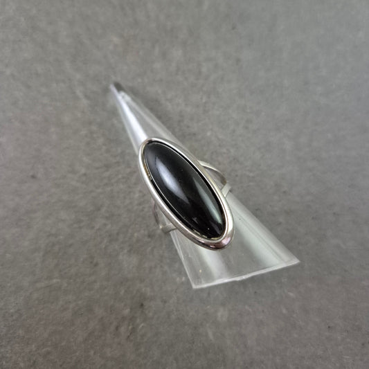 Silber Ring – Mit großem schwarzen Cabochon Stein