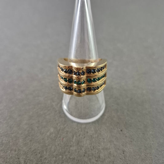 Vintage Cocktailring – Goldfarben mit grünen & schwarzen Schmucksteinen