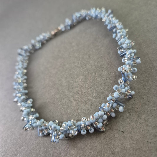 Perlen Kette in Hellblau – Handgefertigtes Vintage Schmuckstück