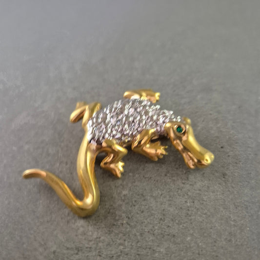 Tier Brosche Krokodil – Vergoldet mit Strass