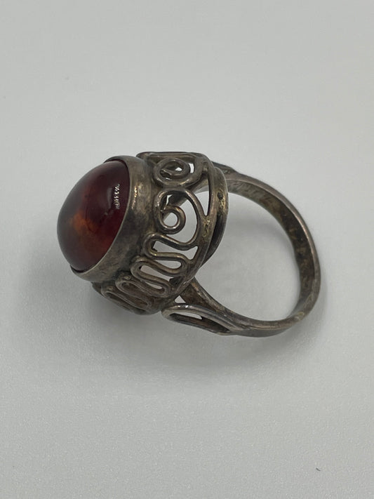 Eleganter Silberring mit transparentem orangefarbenem Stein