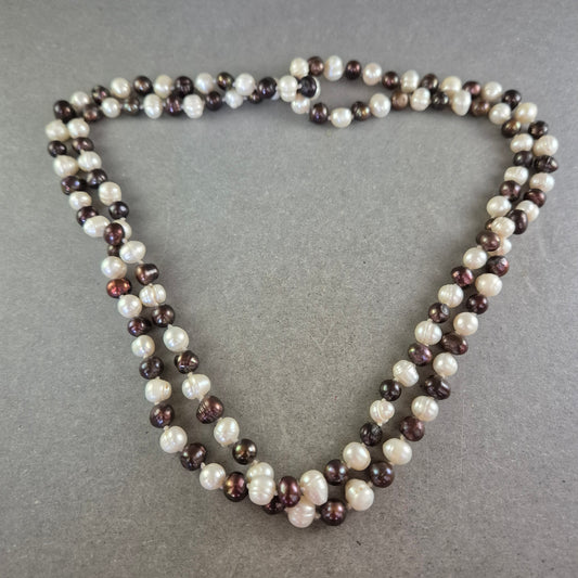 Damen Kette mit weißen und dunklen Perlen – Klassischer Kontrast