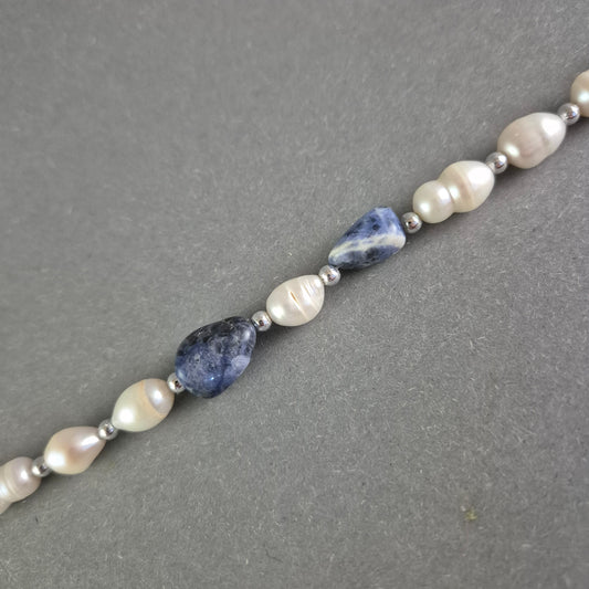 Perlen Kette mit blauen Edelstein Akzenten – Elegant und edel