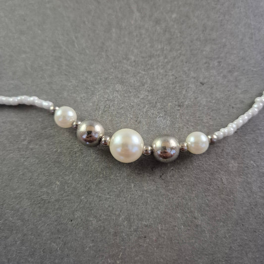 Verspielte Perlen Halskette – Zartes Design mit silberfarbenen Akzenten
