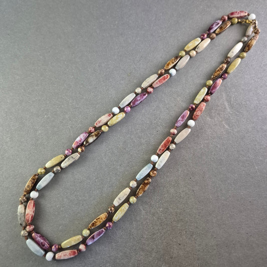 Bunte Stein Halskette – Zweireihiges Design mit Naturstein-Optik