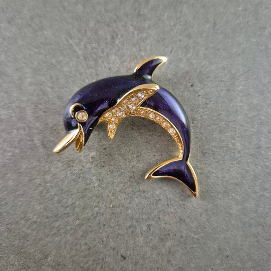 Verspielte Delfin-Brosche in Lila mit Strass und Goldoptik