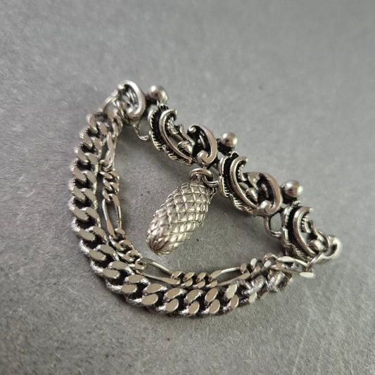 Silberfarbene Vintage-Brosche mit Ketten und Zapfenanhänger
