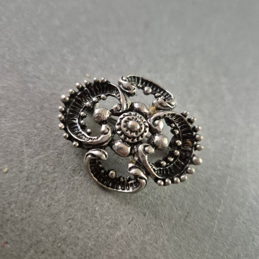 Silberfarbene Vintage-Brosche im Ornamentstil – Verspieltes Reliefdesign