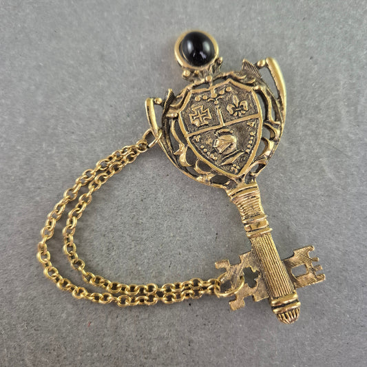 Dekorative Schlüssel-Brosche im Antikstil mit Wappen und Kette