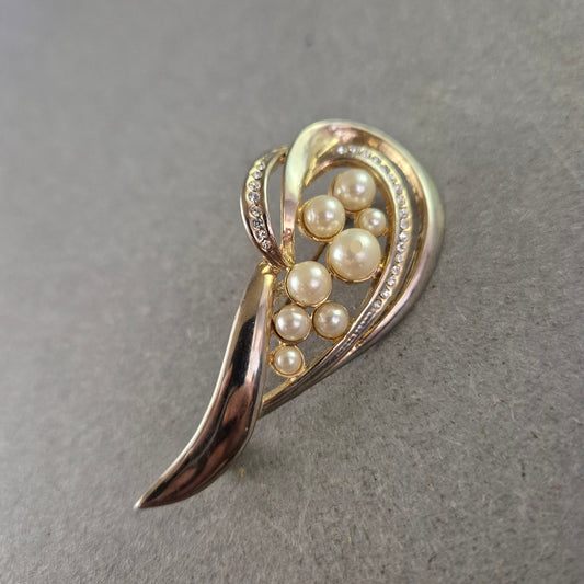 Elegante Brosche mit Zierperlen & Strass – Schwungvolles Design