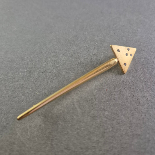 Moderne goldfarbene Brosche in Pfeilform mit Strassakzenten