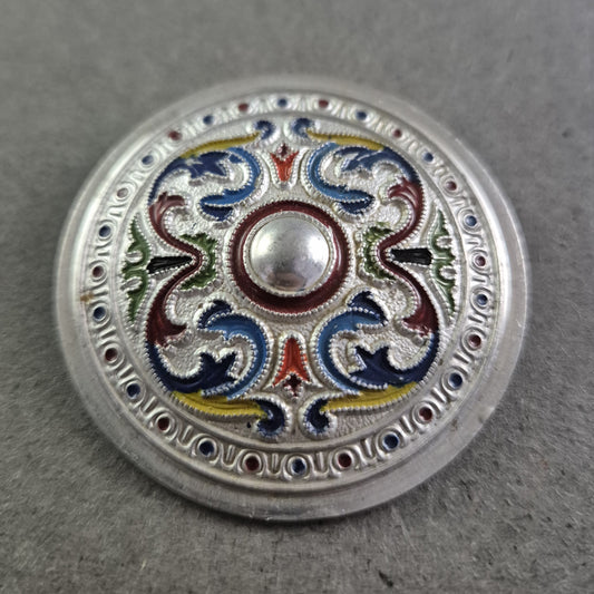 Runde Trachtenbrosche mit bunter Emaille-Verzierung – Alpenstil
