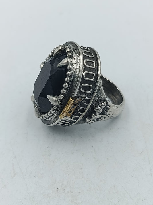 Silberfarbener Klappring mit schwarzem Schmuckstein im markanten Vintage Stil