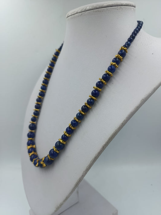 Blaue Perlenkette mit goldfarbenen Zierelementen und klassischem eleganten Look