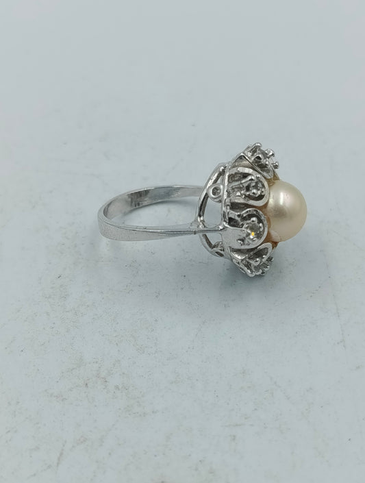 Silberring mit Perle und funkelnden Zierelementen im klassischen Stil Grösse51