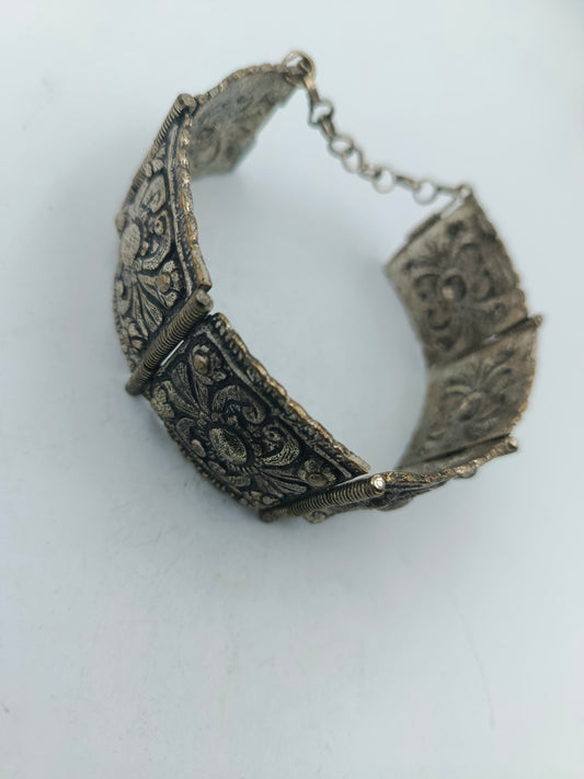 Breites Vintage Armband mit floralem Relief und markanter Gliederoptik