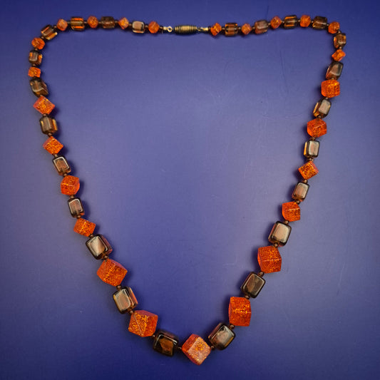 Bernsteinfarbene Würfel-Kette – Acryl mit Glitzer-Akzenten