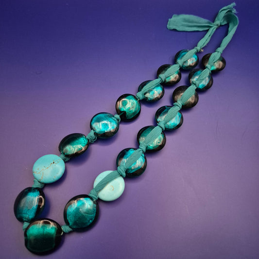 Statement-Kette – Türkise Acrylperlen mit Textilband