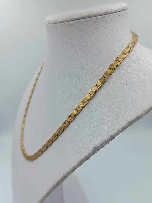 Goldfarbene Halskette mit flacher Gliederstruktur elegant zeitlos und vielseitig kombinierbar