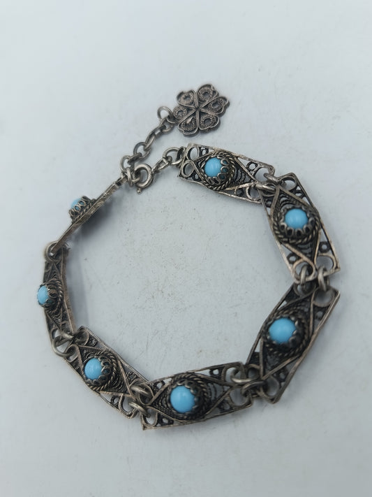 Silberfarbenes Armband mit türkisfarbenen Steinen im filigranen Vintage Stil