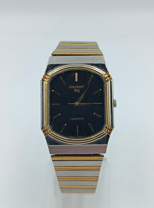 Orient EQ Armbanduhr Edelstahl Goldfarben Schwarz Vintage Quartz Japan Uhr