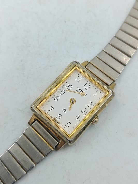 Orient Quarz Armbanduhr rechteckiges Gehäuse mit flexiblem Metallarmband im klassischen Stil