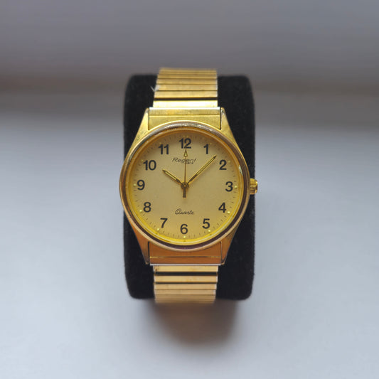 Regent Damen Armbanduhr Goldfarben Vintage Design mit Strukturband Quartz Uhr