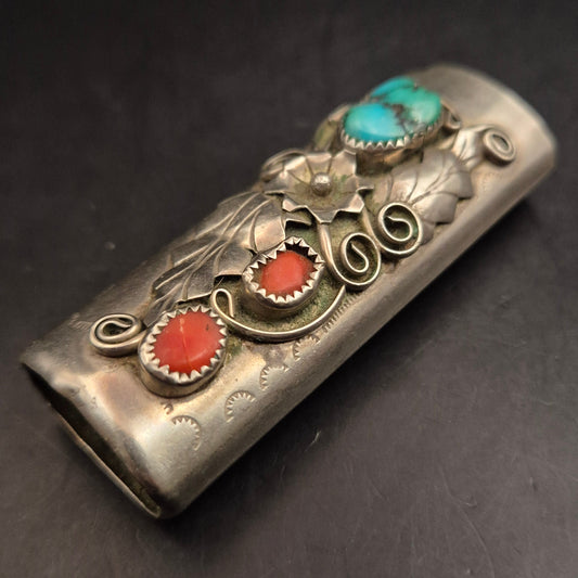 Vintage Silberfarbene Statement-Brosche mit Türkis & Koralle