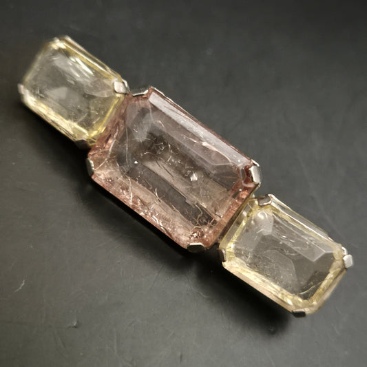 Elegante Vintage Brosche mit Glassteinen in Rosé & Gelb
