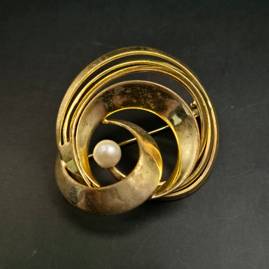 Elegante Vintage Brosche Goldfarben mit Perle, Spiral-Design