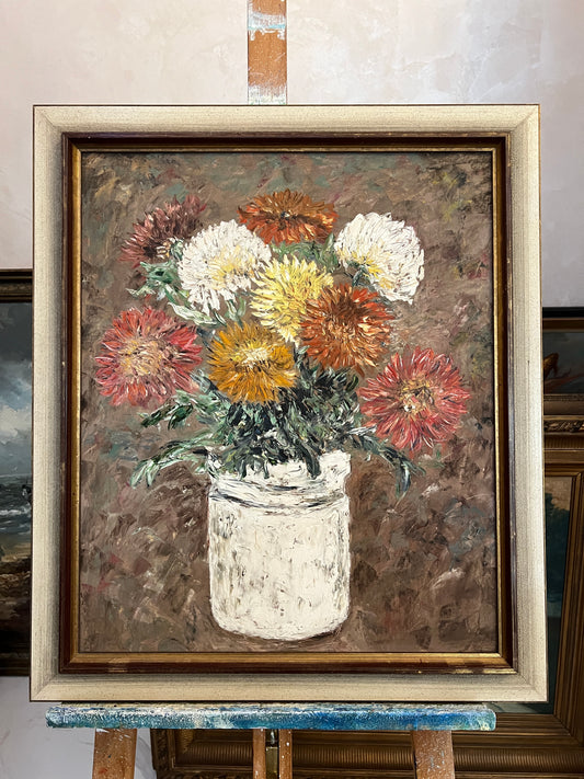 Europäische Schule (XX) Ölgemälde Modernes Blumenstillleben 70x60cm