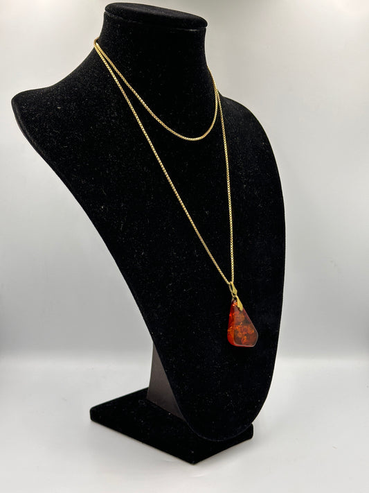 Elegante Vergoldete Halskette mit Bernstein-Anhänger