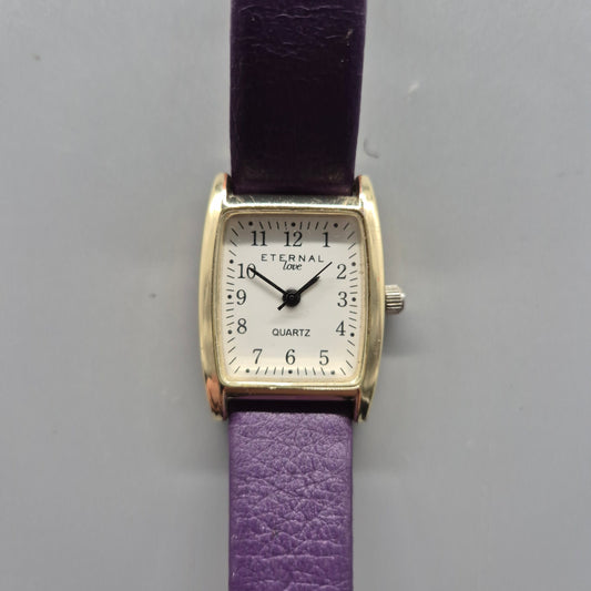 Eternal Love Damenarmbanduhr Elegantes Design mit violettem Lederarmband