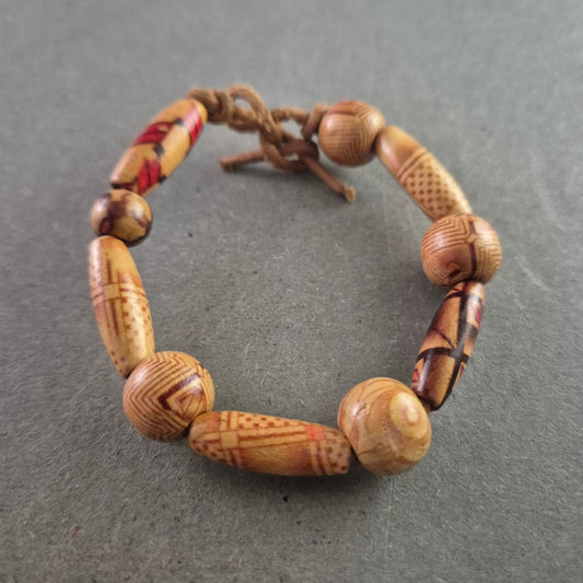 Ethno-Armband mit gravierten Holzperlen – Handgefertigter Look