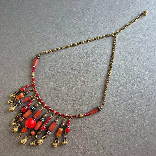 Ethno-Glasperlenkette – Rot & Messinglook