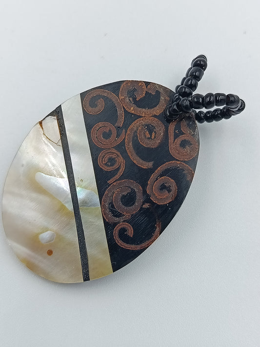 Ethno-Anhänger aus Perlmutt und Holz